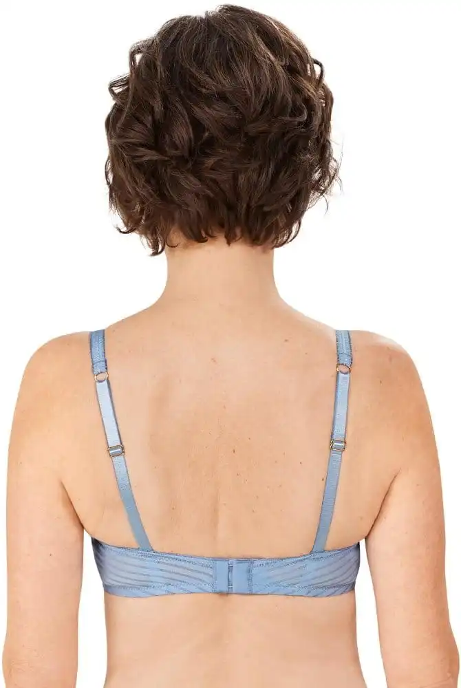 Der Amoena Prothesen-BH Karolina überzeugt mit besonderem Komfort: Die wattierten, dreigeteilten Cups mit eingearbeiteten Taschen und die optimale Schnittführung des Amoena BHs mit Rückenverschluss versprechen einen perfekten Sitz für eine Prothese oder Ausgleichsschale. Der Prothesen BH inspiriert durch bezaubernde Spitze in Fächeroptik am oberen Teil der Cups und macht den bügelfreien Soft-BH Karolina zu einem exzellenten Blickfang. Der untere Teil der Cups ist gestreift gearbeitet. Der exquisite Stil des Prothesen BHs von Markenhersteller Amoena wird zudem durch die hochwertige Spitzenverarbeitung an den Seiten und am Trägeransatz unterstrichen. Eine kleine Satinschleife, mit edlen goldenen Anhänger, ziert den Mittelsteg, der aus durchlässigem aber unterfütterten Netzmaterial gearbeitet ist. Die Träger sind verstellbar und werden mit zunehmender Größe zur entspannten Rückenentlastung breiter. Diskrete weiche Prothesentaschen beidseitig behalten Ihre Brustprothese sicher verwahrt, den ganzen Tag lang. Der Prothesen BH ist aus angenehmer Mikrofaser gearbeitet und trägt sich daher besonders weich und komfortabel. Kombinieren Sie zu Prothesen BH Karolina den eleganten Slip der Serie und tragen Sie ein verführerisches Set, das Ihre Weiblichkeit betont.