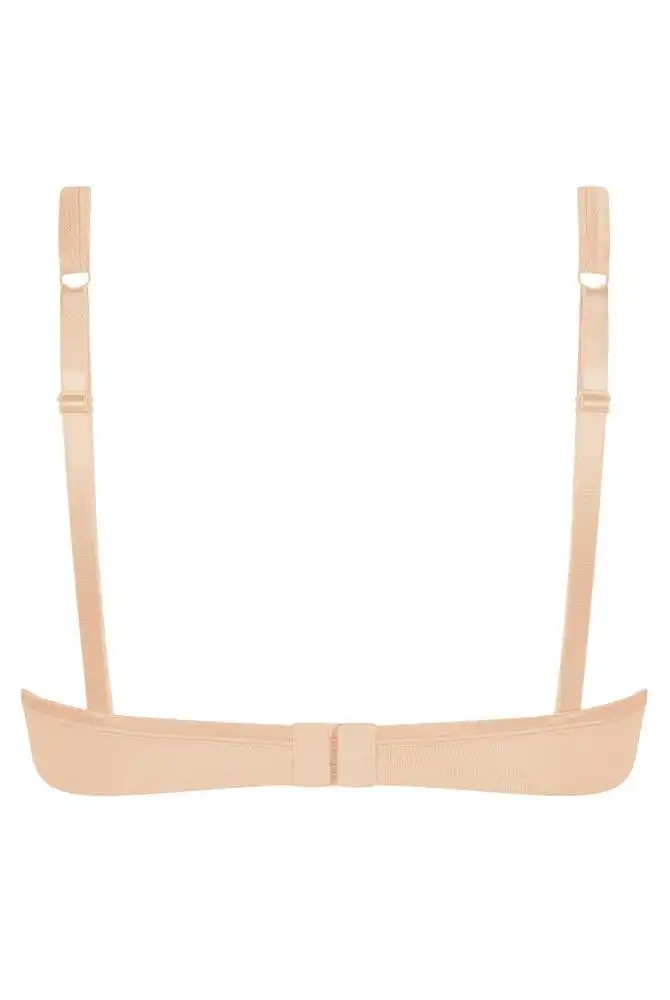Eine dekorative Zierblende, ein breiter Satinbesatz am Dekolleté, der in die Träger übergeht, ziert den Soft-BH genauso, wie ein hübsches Strass-Steinchen am Mittelsteg. Die leicht wattierten, geformten Cups mit Zwei-Wege-Stretch Mikrofaser sind blickdicht und nahtlos. Unter der Kleidung zeichnen sich daher keine Konturen ab. Die Cups gleichen Gewebe-Unebenheiten hervorragend aus und schmeicheln dem Körper.