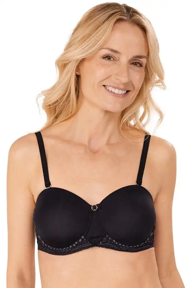 Prothesen BH Pia überzeugt nicht nur durch seine atemberaubende Optik sondern auch durch die umwerfende Funktionalität. Die wattierten vorgeformten Cups mit Bügeln sitzen perfekt und unterstützen den Halt auch, wenn Sie Prothesen BH Pia ohne Träger anziehen. Das weiche Mikrofasermaterial und dezente goldene Accessoires runden das Design wirkungsvoll ab. Der attraktive Bandeau-BH mit Bügel bietet perfekten Halt für trägerlose Anlässe. Ein Silikonband am oberen Cuprand sorgt für zusätzlichen Halt und verhindert ein Rutschen. Vorgeformte gepolsterte Cups verbergen Unebenheiten und formen eine feminine Silhouette. Eingearbeitete Bügel bieten zusätzlichen Halt und Unterstützung. Dank kleiner Clipse am Träger können diese flexibel getragen werden: trägerlos, als Neckholder, überkreuz, oder klassisch gerade.