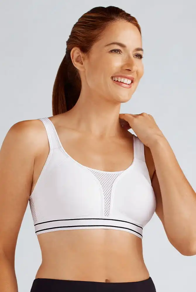 Sport-Prothesen-BH Modell Performance von Firma Amoena zeigt sich in der Optik sportlich modisch chic durch Doppelstreifen im Unterbrustband, die dem Wäschemodell eine leichte Note verleihen.