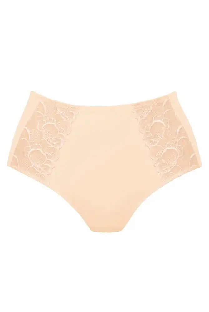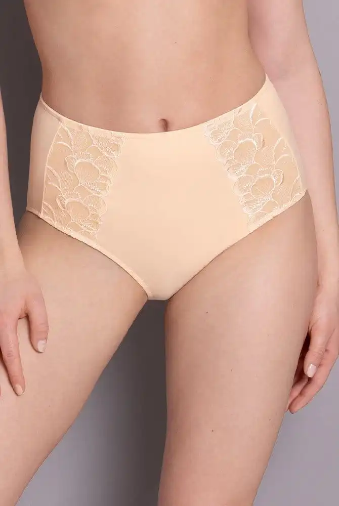 Lovely Lucia! Passend zu den Soft-BHs greift der hohe Taillenslip das zauberhafte Blütendessin der Serie Lucia auf. Das weiche, elastische Material schmiegt sich angenehm an Ihre Haut und vermittelt ein leichtes Tragegefühl. Softe und zugleich dehnbare Elastikbänder schließen den Slip am Bein angenehm ab und schneiden nicht ein. Ein Verrutschen wird vermieden. Der Beinausschnitt ist moderat.