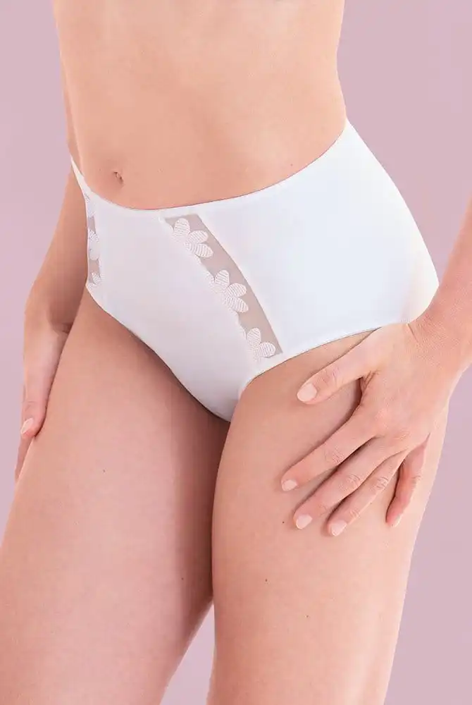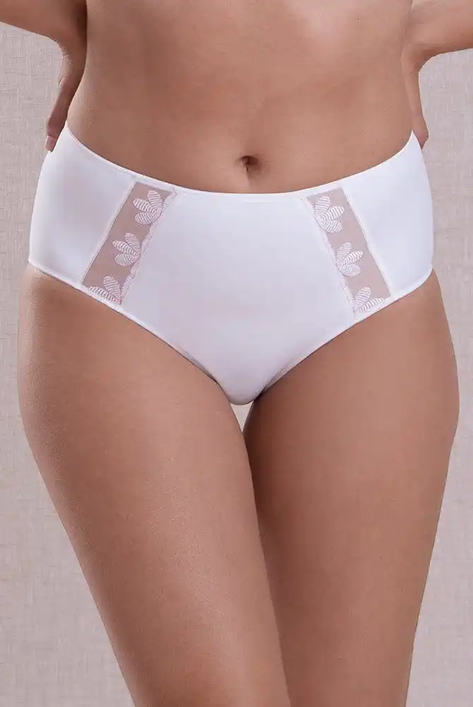 Der Taillenslip Sophia ergänzt perfekt die BHs der Serie oder andere gleichfarbige BHs. Die weiche elastische Qualität schmiegt sich weich an Ihre Haut. Die dekorative Blumenstickerei des BHs wird im Vorderteil aufgegriffen und schließt zur Taille mit einem feinen Elastikband ab. Rundum aus weicher, elastischer Stretch Ware trägt sich der Slip leicht und angenehm. Der Beinabschluss ist moderat. Der Bund ist taillenhoch geschnitten.