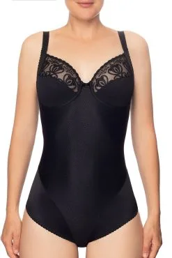 Der Body mit Bügel ist aus hochwertigen Materialien gefertigt, die weich und angenehm auf der Haut sind. Schöne vorgeformte Cups mit integrierten Bügeln formen natürlich und geben der Büste zuverlässigen Halt, die edle Spitze wirkt sehr elegant. Selbst unter enger Kleidung ist sie nicht nur nahezu unsichtbar, sondern modelliert den Körper auch perfekt. Verstellbare Träger, im Schritt aufhakbar.