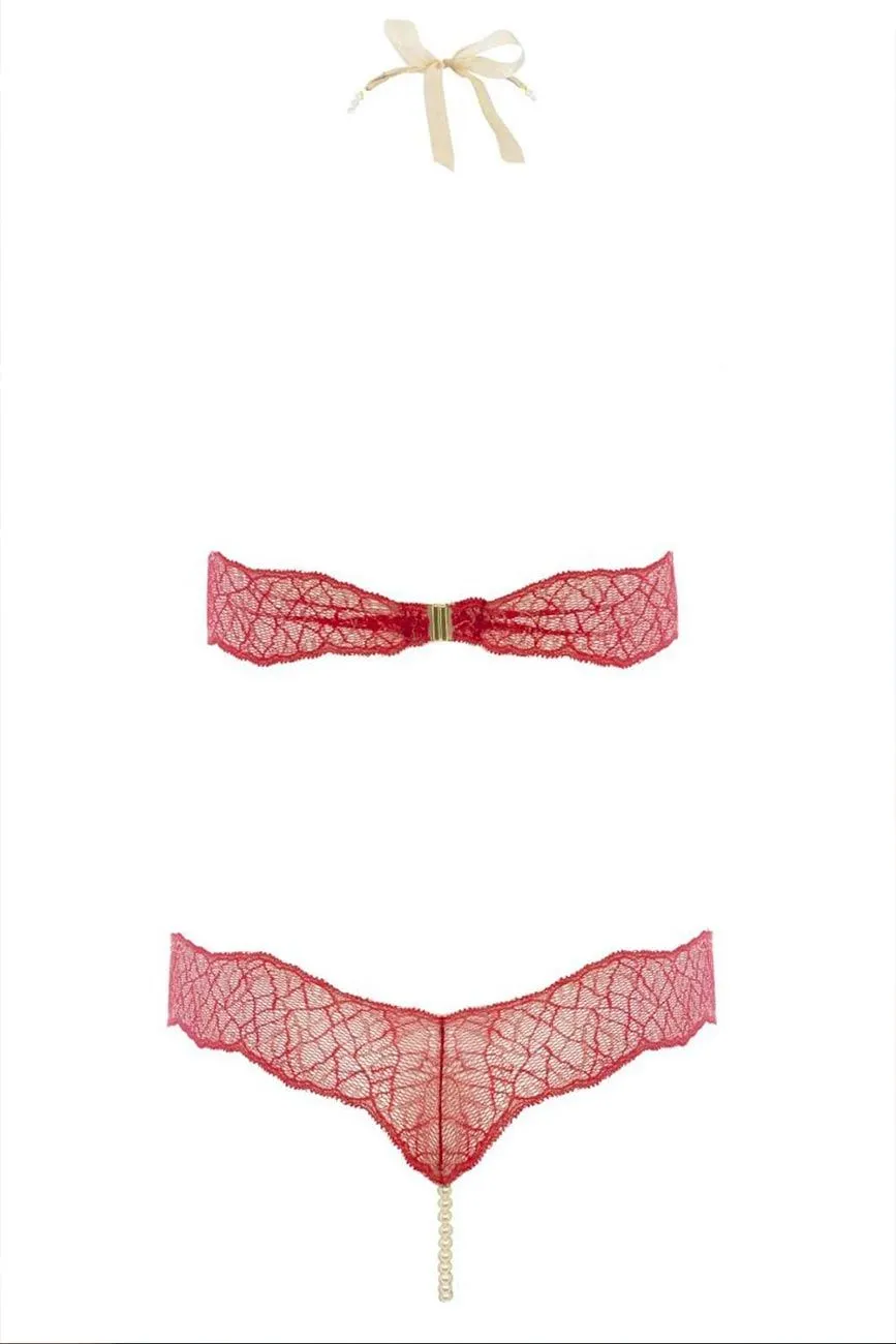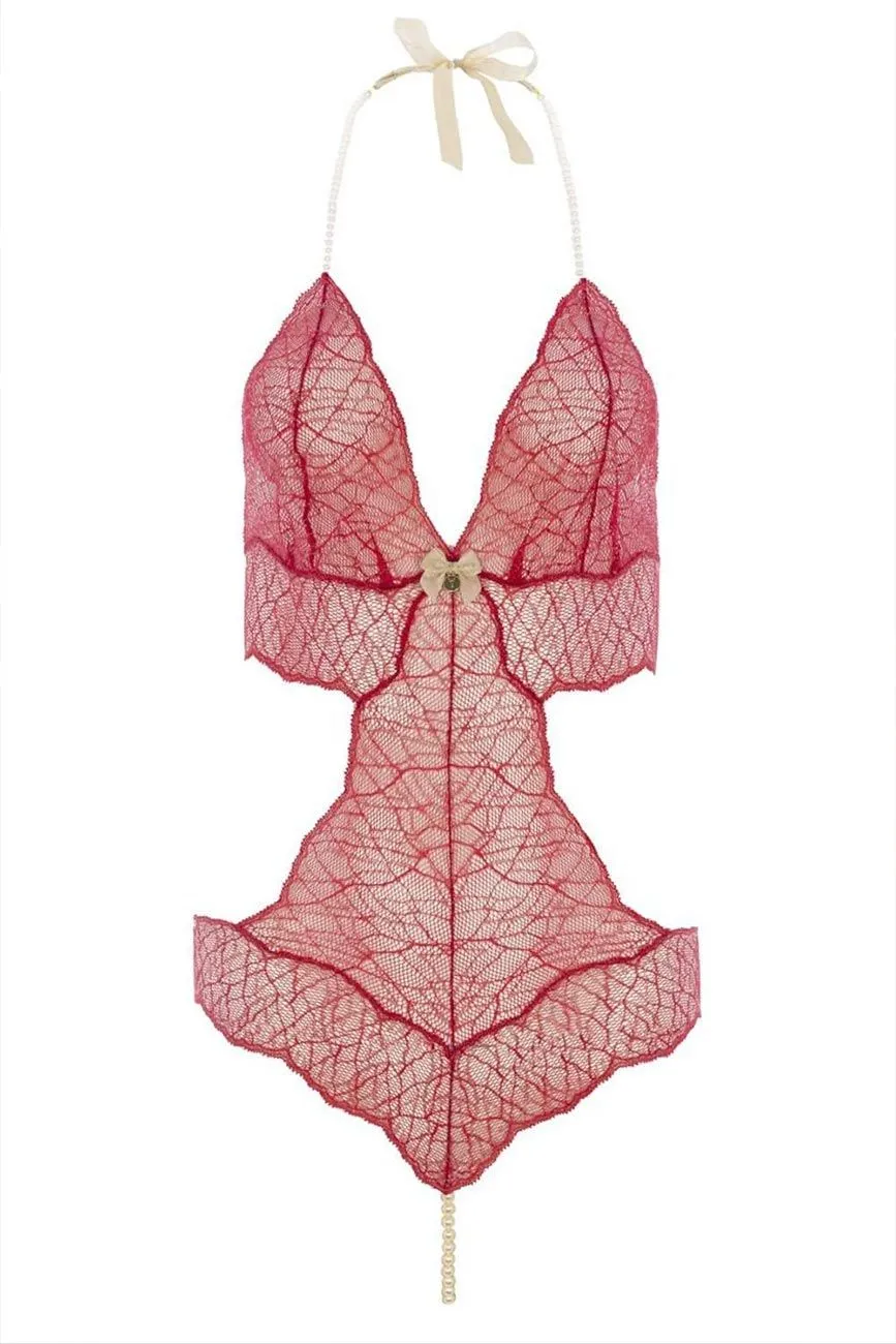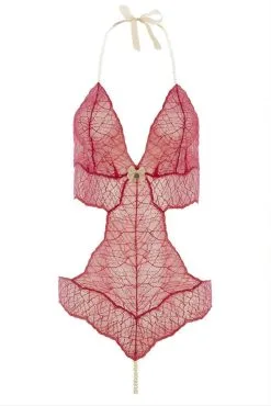 Body Ouvert aus feiner italienischer Spitze mit Lurex-Goldfaden und extravagentem Schnitt. Die luxuriösen Träger aus Manacor-Perlen sind im Nacken mit einem Satinband zu schließen. Die im Schritt fest eingenähte einreihige Perlenkette aus Manacor-Perlen sorgt für ein stimulierendes Gefühl und eine edle Zierung Ihres Intimbereichs.