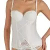 Diese luxuriöse Bügel-Corsage ist komplett aus weicher, anschmiegsamer Calais-Spitze gearbeitet und zaubert eine verführerische Transparenz. Die eingearbeiteten Stäbchen geben einen perfekten Halt. Träger und Strapse sind abnehmbar.
