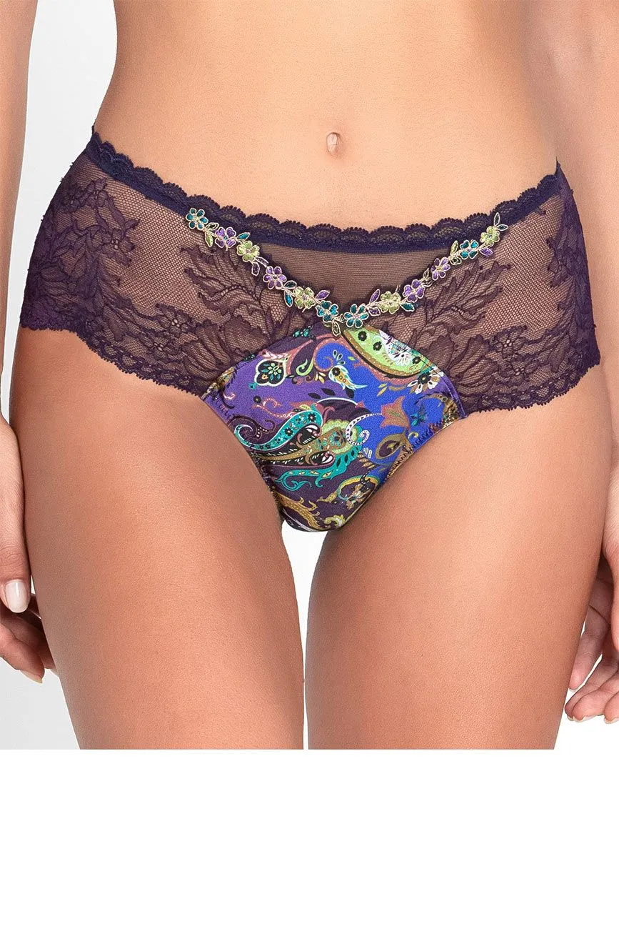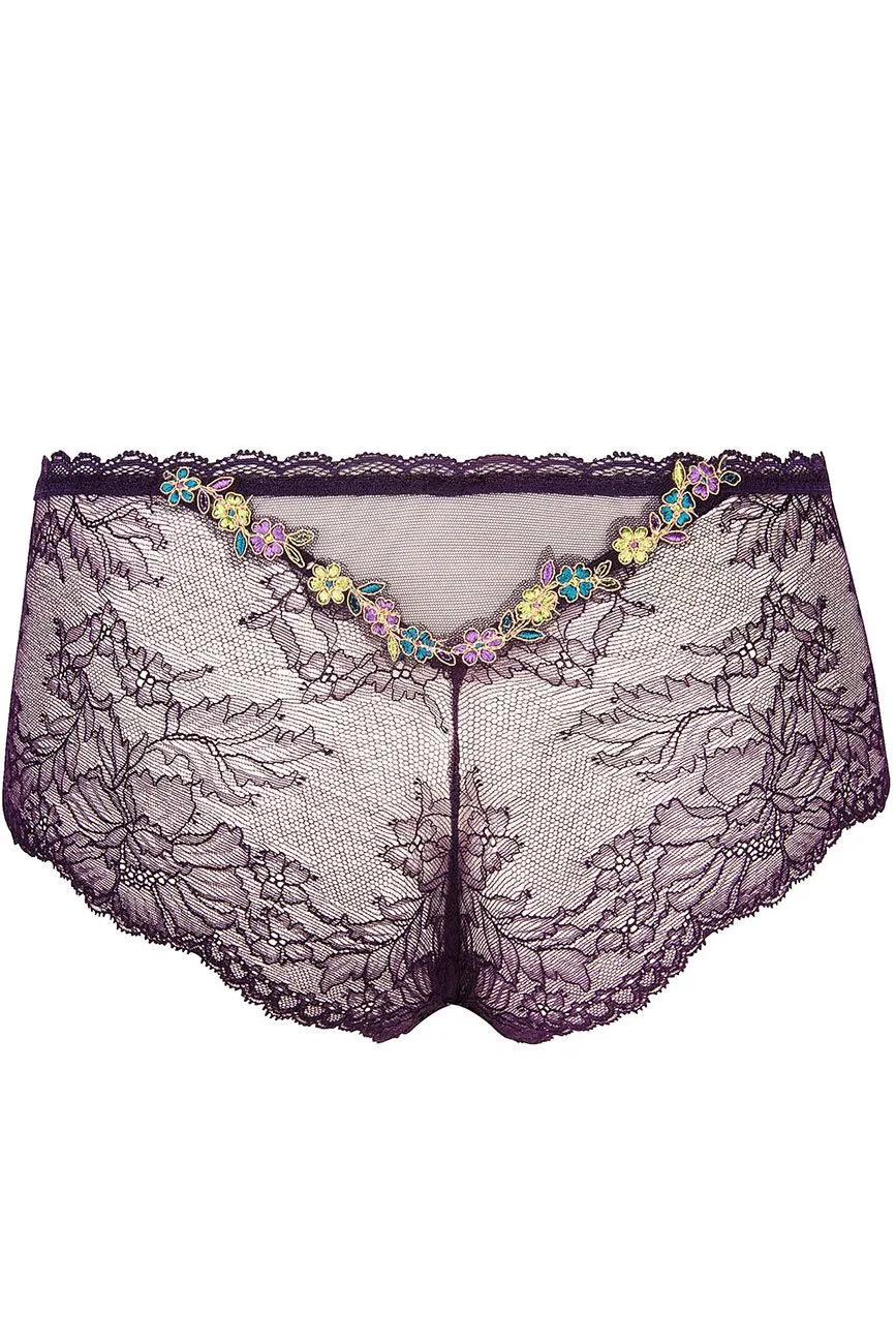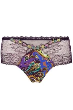 Inspiriert von der Magie des Orients. Luxuriöses Stringpanty von Lise Charmel. Das herrlich edle Material ist glänzende Seide mit fantasievollem Design, luxuriöse Calais Chaudry-Spitze und kostbare Stickerei. Baumwollschrittfutter für mehr Komfort.
