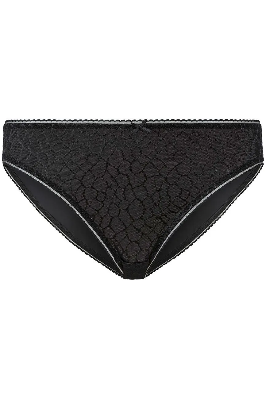 Slip mit mit tollem Muster, welches leicht schimmert und Spitzenkante, sowie kleiner Zierschleife vorne mittig. Eingearbeiteter Baumwollzwickel.