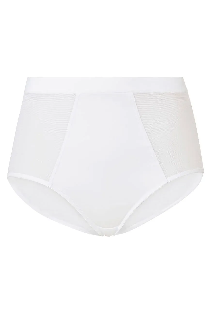 Modischer High-Waist Slip mit elastischem Bund. Seitliche Einsätze aus transparentem Netzmaterial. Hinten und vorne mittig blickdicht unterlegt. Passender BH aus der gleichen Serie erhältlich. Mit eingearbeiteten Baumwollzwickel. Obermaterial: 85% Polyamid, 15% Elasthan.