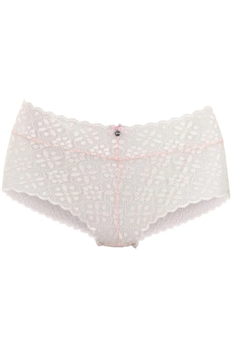 Highwaist Culotte, ganz aus herrlich weicher, elastischer und transparenter Spitze. Kleine süße Schleife vorne mittig und Metalllogo.