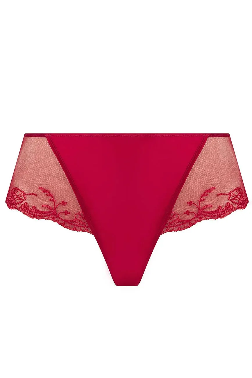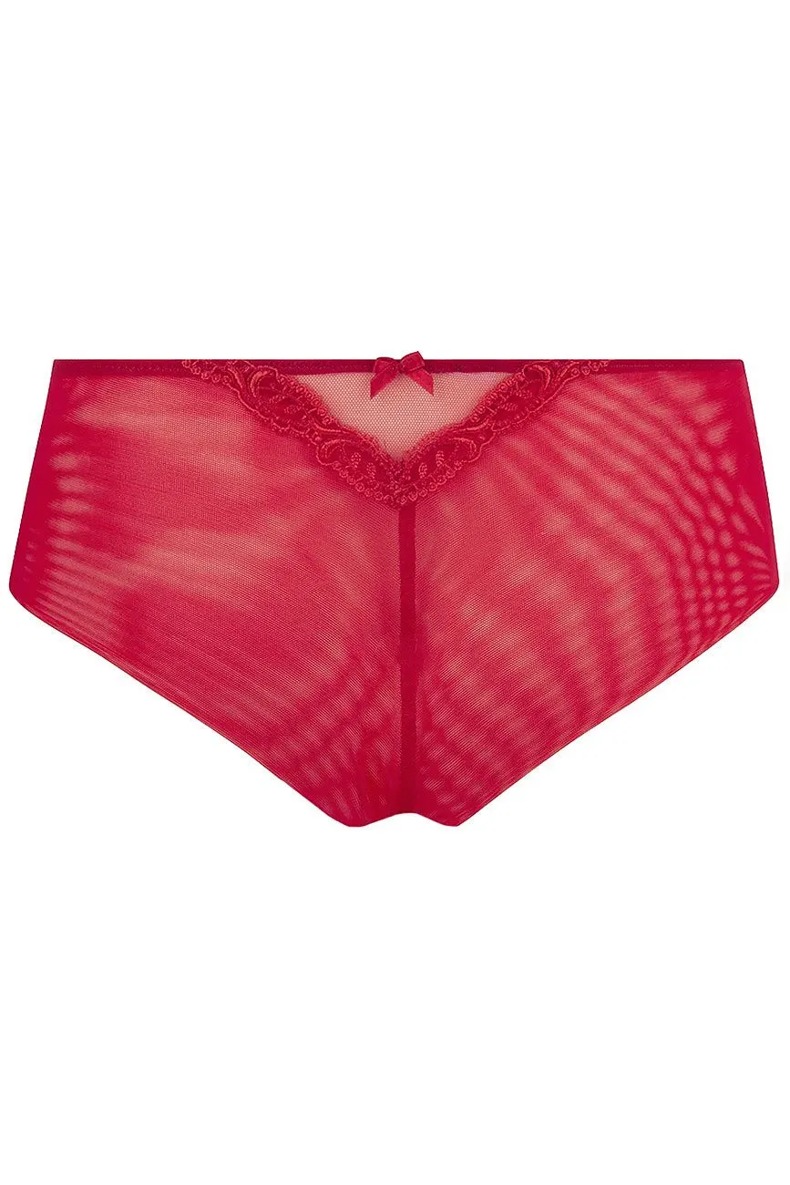 Sinnliche Hotpants mit perfektem Tragekomfort. Blickdichtes Vorderteil aus kostbarer Satinseide. Seiten und RĂĽcken aus feinem TĂĽll in zarter Transparenz. Eine kunstvolle Stickerei ziert den Beinausschnitt im Vorderteil und den oberen RĂĽcken. Eine kleine Satinschleife schmĂĽckt die hintere Mitte.