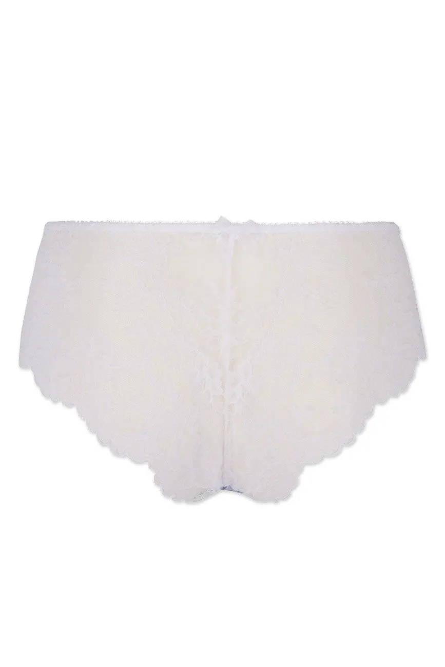 Verführerische Hotpants in zarter Transparenz. Seitlicher Einsatz im Vorderteil und Rücken aus floraler Spitze. Vorderer Einsatz aus softem Material mit schmalen transparenten Streifen durchbrochen. Ein hochwertiges Guipure-Motiv ziert das Vorderteil. Die weichen Materialien und der eingearbeitete Baumwollzwickel sorgen für einen angenehmen Tragekomfort.