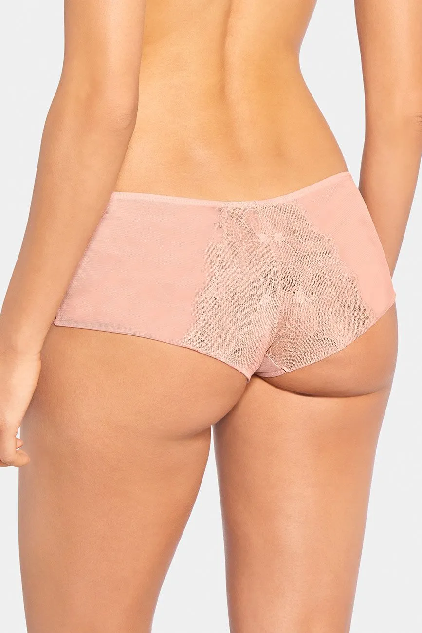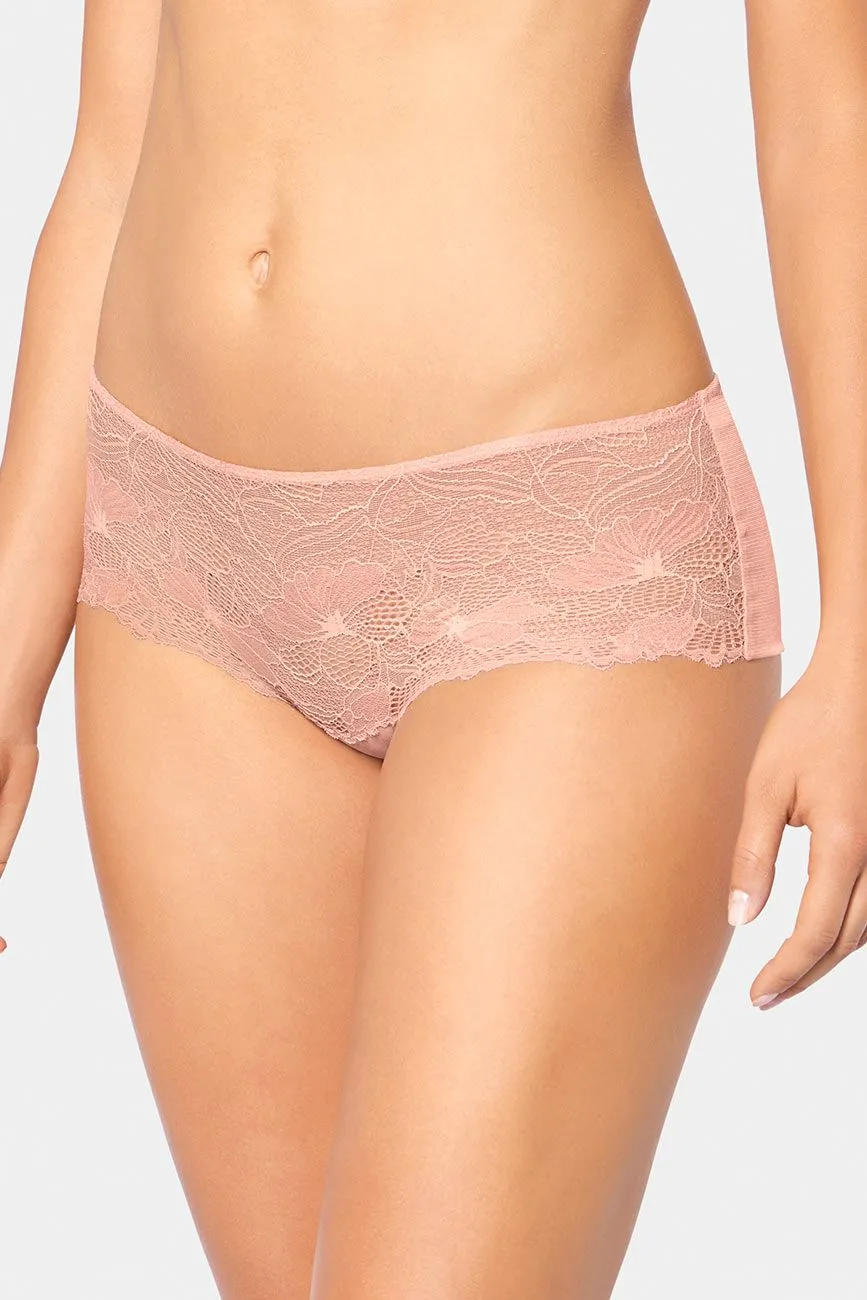 Hotpants in neuer Bandeau-Form im Retro-Look. Zarte Spitze, feinster Tüll und eine hochwertige Verarbeitung sind on top Details, die das Panty so wunderbar angenehm zu tragen machen. Hüftig geschnittene Passform mit breiter Seitenpartie, angenehm elastisches Bündchen.