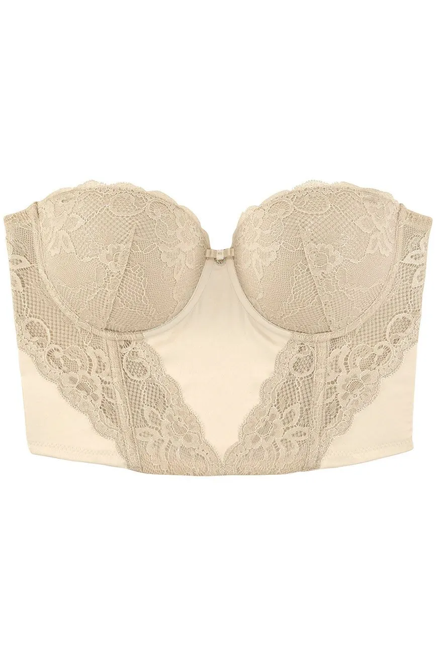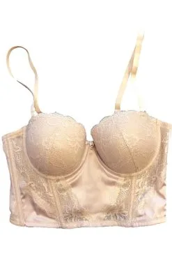 Glamouröse Dessous für deinen WOW-Auftritt! Sinnliche Corsage aus edlem Satin und zarter Spitze mit eingewobenem Glitzer-Faden. Die nahtlos vorgeformten, leicht gefütterten Cups mit Bügeln zaubern ein tolles Decolleté. Die Träger sind abnehmbar – die Corsage ist trägerlos tragbar. Individuell verstellbarer Rückenverschluss.