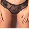Verführerischer Mini-String mit optimalem Tragekomfort. Vorderteil aus kostbarer Satinseide und hochwertiger Leavers-Spitze. Für einen glamourösen Look sind die schmalen Seiten und der Bund im Rücken mit exclusiver Guipure verziert.