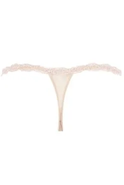 Verführerischer Mini-String mit optimalem Tragekomfort. Vorderteil aus kostbarer Satinseide und hochwertiger Leavers-Spitze. Für einen glamourösen Look sind die schmalen Seiten und der Bund im Rücken mit exclusiver Guipure verziert.