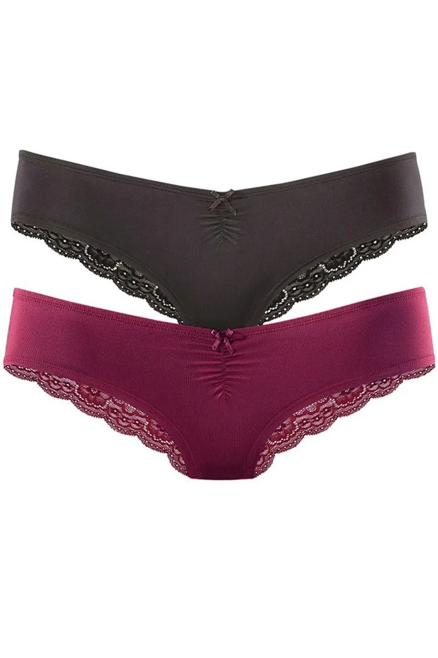 String vorne aus weichem Microtouchmaterial, hinten aus Spitze im 2er Pack, mit Baumwollschrittfutter.