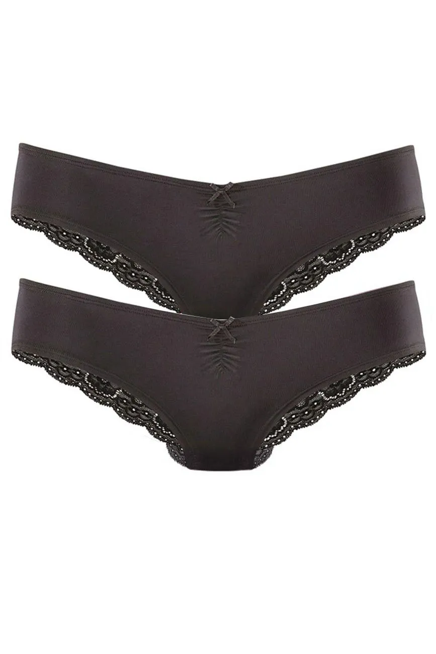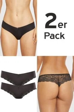 String vorne aus weichem Microtouchmaterial, hinten aus Spitze im 2er Pack, mit Baumwollschrittfutter.