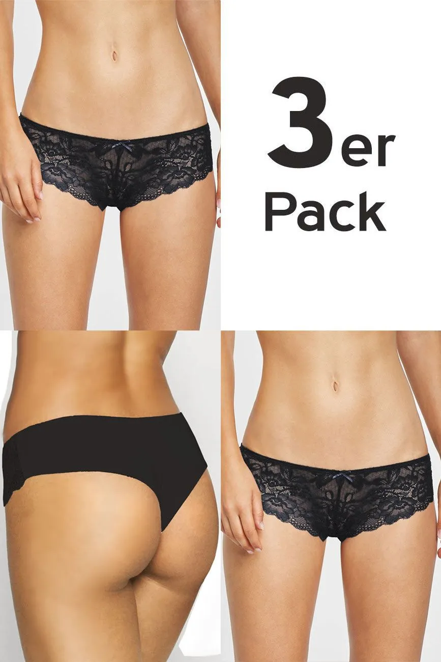 Spitzen-Brazilslip im 3er Pack von Lascana. Die wunderschönen Brazilslips sind vorne ganz aus weicher, elastischer Spitze und im Rücken aus zarter, glatter Microfaser, mit Baumwollschrittfutter. Perfekte Coordinates zur aktuellen Mode.
