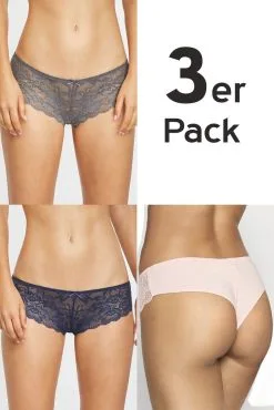 Spitzen-Brazilslip im 3er Pack von Lascana. Die wunderschönen Brazilslips sind vorne ganz aus weicher, elastischer Spitze und im Rücken aus zarter, glatter Microfaser, mit Baumwollschrittfutter. Perfekte Coordinates zur aktuellen Mode.