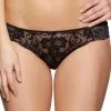 Feminine Panty mit feiner Zierschleife in der vorderen Mitte. Rundherum aus zarter, anteilig recycelter, elastischer Spitze. Mit eingearbeitetem Baumwollzwickel.
