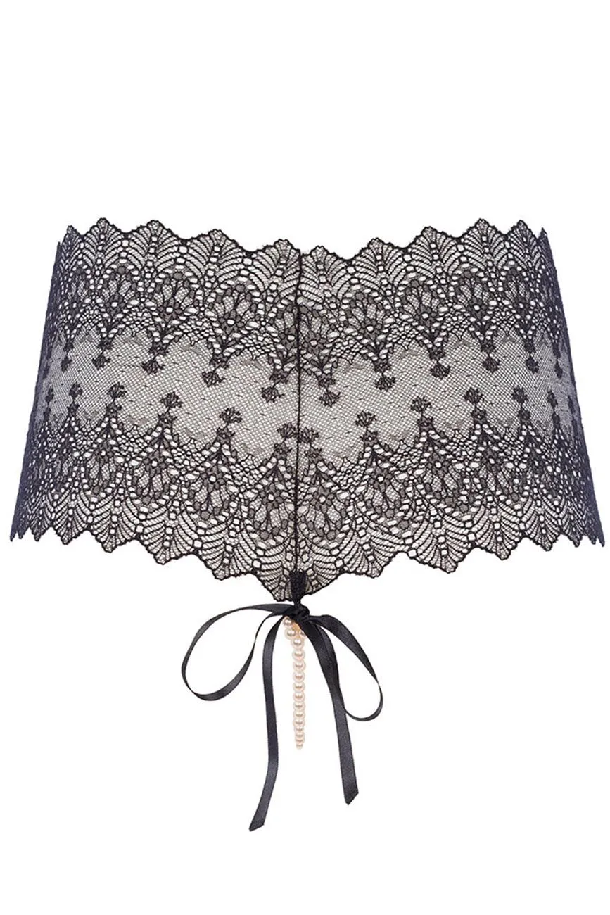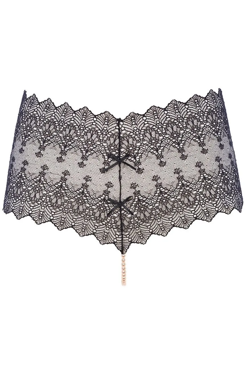 Das sinnliche Panty-Ouvert ganz aus herrlich zarter, transparenter Spitzengalone bezaubert durch seine filigrane Optik und liebevolle Details. Die Manacor-Perlenkette führt durch den Schritt und ist im Rücken durch ein verspieltes Taftbändchen zu öffnen.