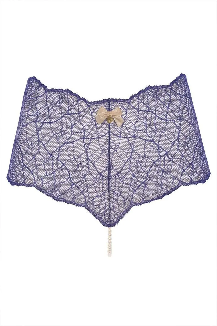 Edler Ouvert-Panty der Serie Bracli Sydney aus feiner italienischer Spitze mit Lurex-Goldfaden und verspieltem Schleifchen. Die im Schritt fest eingenähte 2-reihige Perlenkette aus Manacor-Perlen sorgt für ein stimulierendes Gefühl und eine edle Zierung Ihres Intimbereichs.