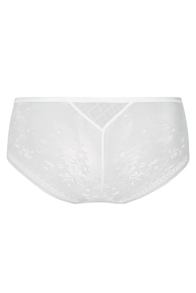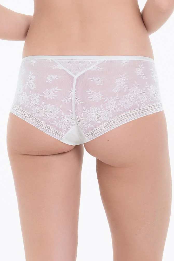 Modern mit femininer Spitze überzeugt Hipster Rosemary darüber hinaus mit seinem perfekten Tragekomfort und der hochwertigen Qualität. Im Vorderteil ist das Design verspielt mit blickdicht hinterlegtem Karo Allover. Transparente Spitze rückseitig und an den Seiten sorgt für sinnliche Leichtigkeit und schmiegt sich angenehm an Ihre Haut. Der flache Spitzenabschluss schneidet nicht ein und zeichnet sich nicht unter enger Kleidung ab. Der Beinausschnitt ist moderat hoch. Der Bund ist komfortabel hüfthoch geschnitten. Hipster Rosemary ist die perfekte Ergänzung der Rosemary BHs.