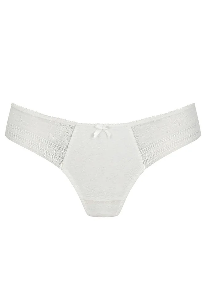 Passend zu den BHs der Anita-Serie „Fleur“, ist der String im Vorderteil aus Allover-Spitze und mit Mikrofaser-Charmeuse unterlegt. Ein Blickfang ist die komplett aus transparenter Spitze verarbeitete Rückseite.