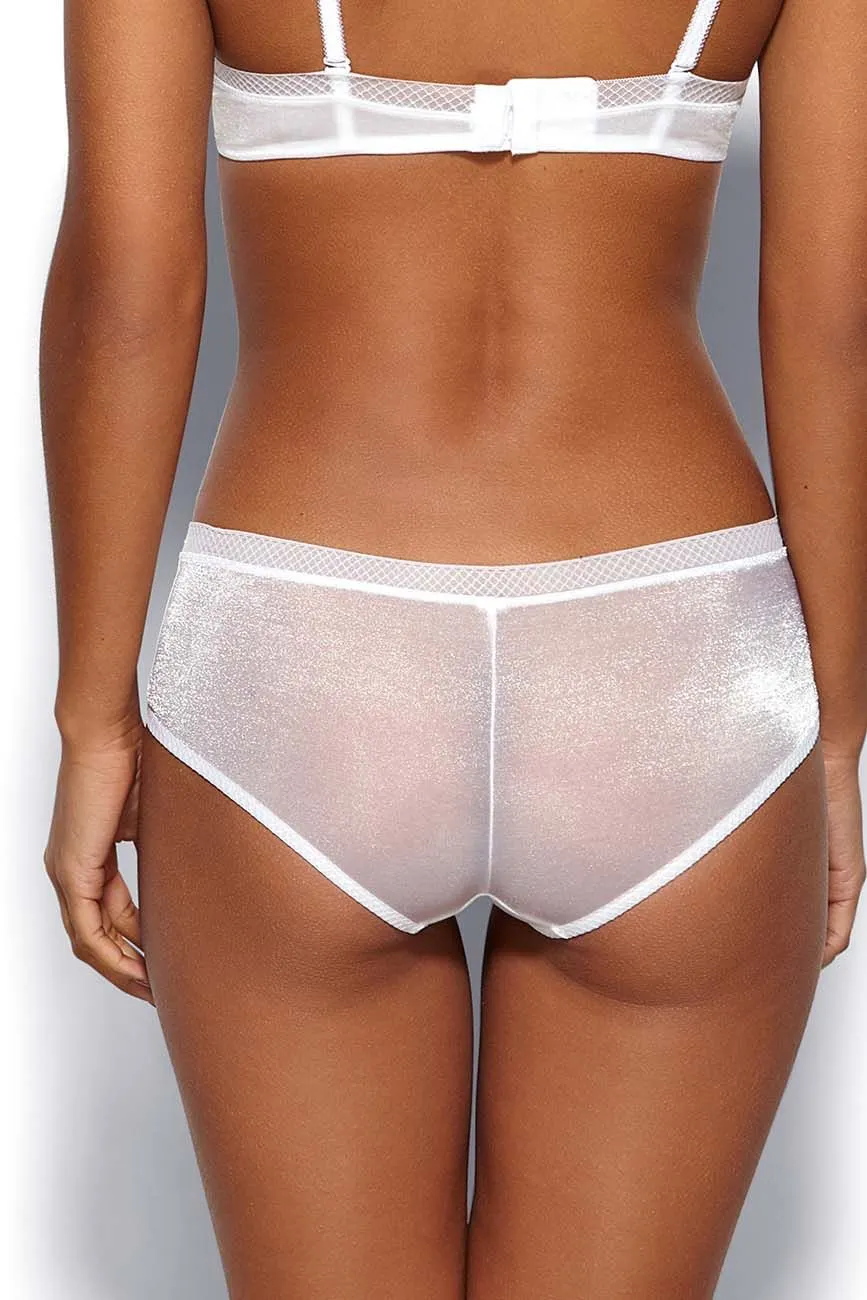 Edle Shorty aus zart schimmerndem Tüll in sinnlicher Transparenz. Die dezente Borde an den Abschlüssen verleiht einen femininen Style. Ein goldenes Logo ziert das Vorderteil. Shorty mit Baumwollzwickel.