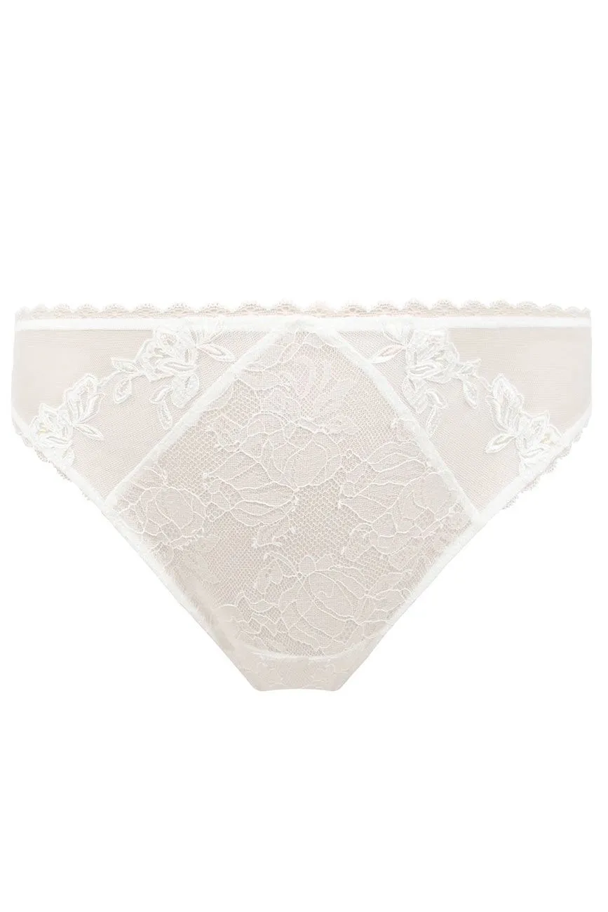 Luxuriöser Slip von Lise Charmel. Der mit besonders edlen Blütenstickereien verzierte Slip ist vorne ganz aus prächtiger Calais Caudry-Spitze, das Rückenteil ist aus glatter und hauchzarter Microfaser mit ganz flachen Säumen. Perfekt auch als Hochzeits-Dessous.