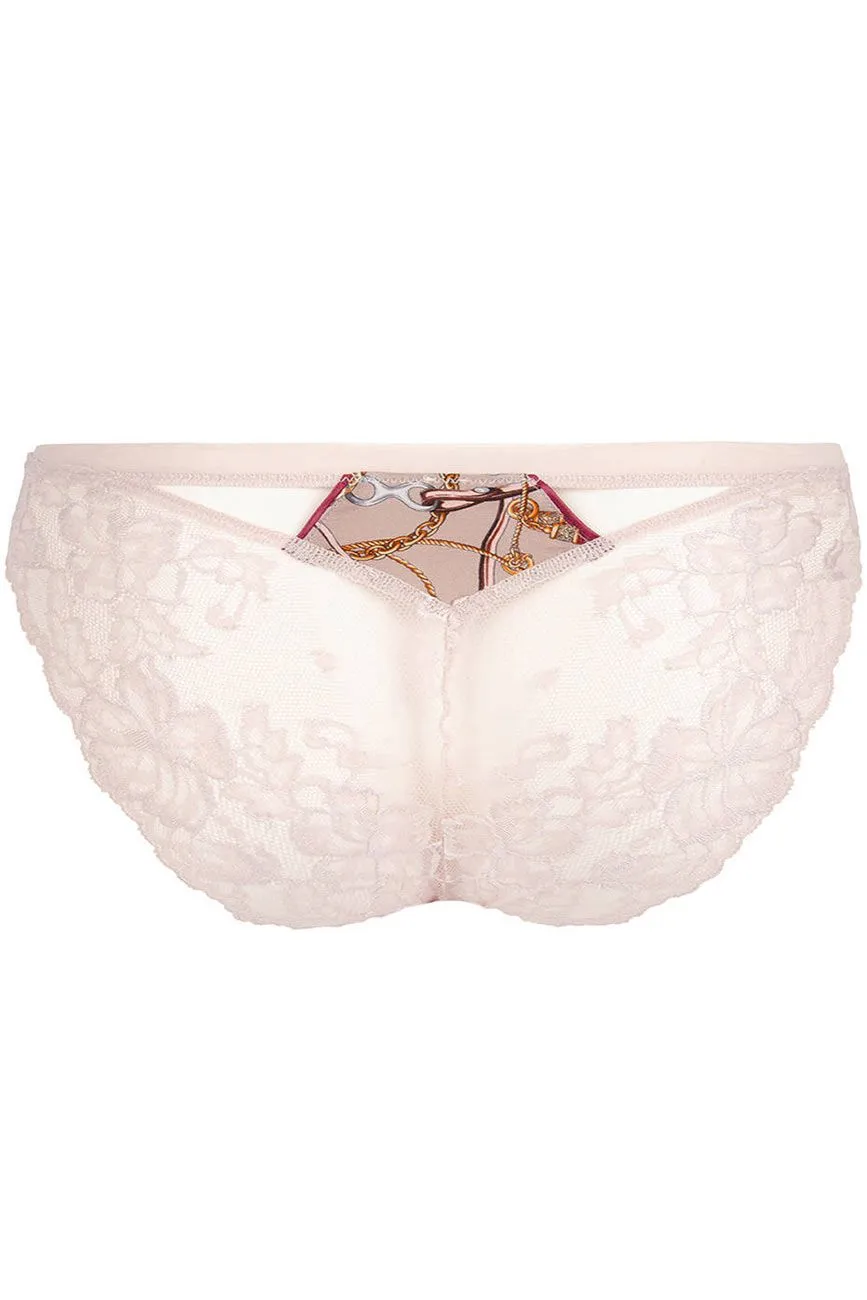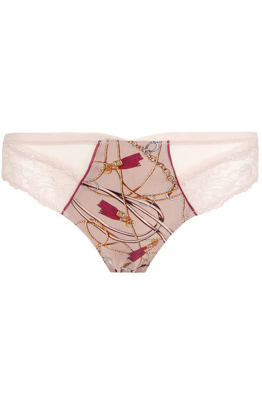 Slip mit reichem, klassischem Schaldruck auf edler Seide und sinnlicher Leaversspitze verziert. Liebevolle Details und besonders luxuriöse Optik, von Lise Charmel.