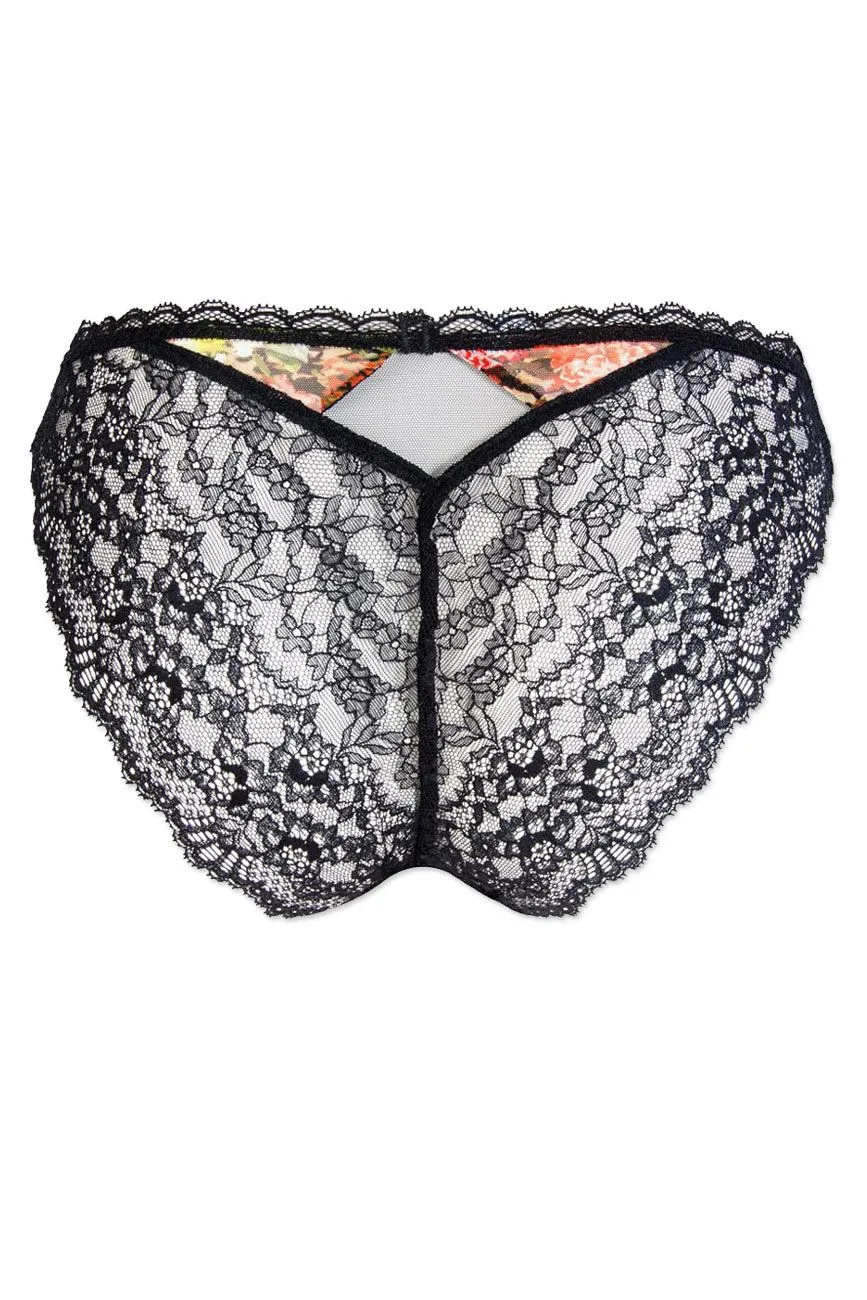 Verführerischer Slip aus hochwertiger Leavers-Spitze in sinnlicher Transparenz. Der einzigartige, farbenfrohe Leopard- und Blütendruck auf feinem Tüll sticht sofort ins Auge. Die kunstvolle Blütenstickerei kommt im Vorderteil perfekt zur Geltung. Die Mittelnaht im Rücken sorgt für eine perfekte Passform. Mit optimalem Tragekomfort und angenehmen Baumwollzwickel.