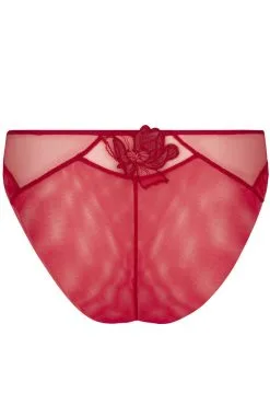 Extravagant – luxuriös – sexy: transparentes Mesh mit edler Blütenstickerei, die Blütenblätter sind aus effektvollem Lederimitat gearbeitet. Slip, rundherum reich verziert, im Rücken ganz aus edlem Mesh mit Stickerei.