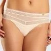 Edler Slip aus zart schimmerndem Tüll in sinnlicher Transparenz. Für einen reizvollen Look sorgt die weiche, flache Spitze im Vorderteil. Die dezente Borde an den Abschlüssen verleiht einen femininen Style. Ein goldenes Logo ziert das Vorderteil. Slip mit Baumwollzwickel.