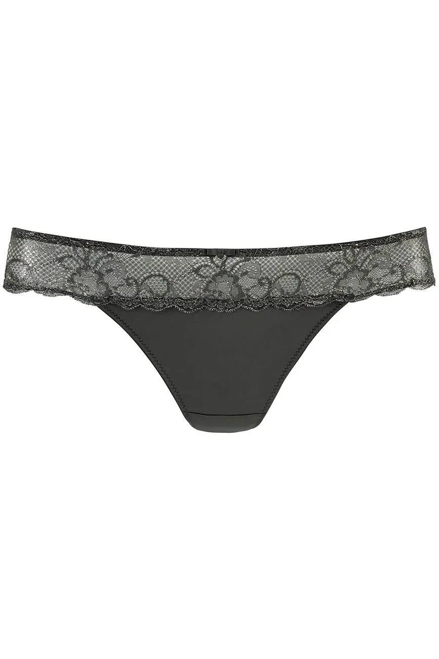 Glamouröse Dessous für deinen WOW-Auftritt! Verführerischer Slip aus edlem Satin mit einem Bund aus zarter Spitze mit eingewobenem Lurex-Glitzerfaden und einer kleinen Zierschleife vorne mittig. Der eingearbeitete Baumwollzwickel sorgt zudem für angenehmen Tragekomfort.