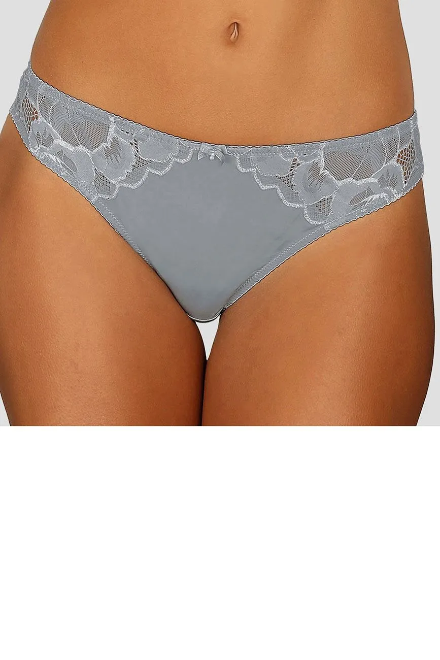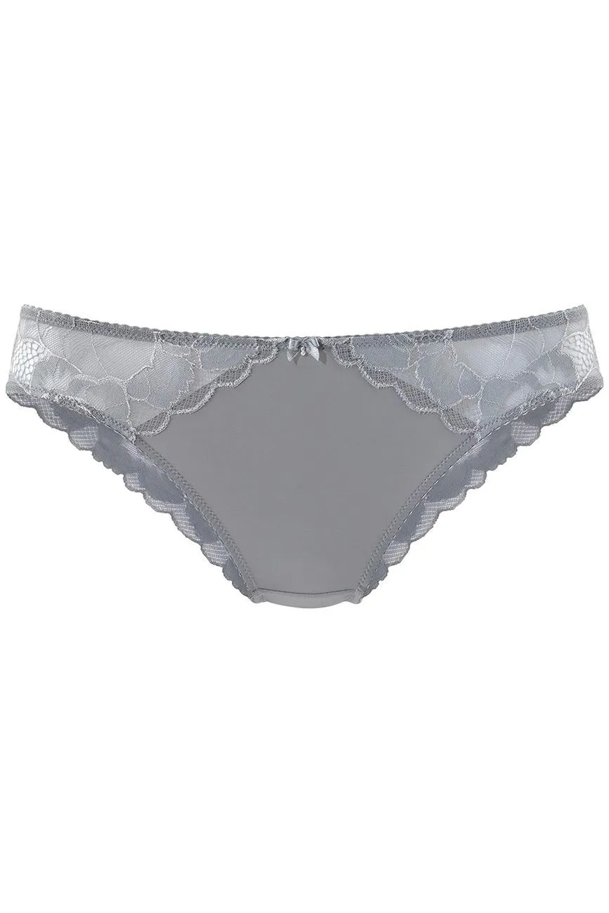 Eleganter Slip aus elastischem Material mit perfektem Sitz. Vorderteil aus weicher Microfaser mit seitlichem Spitzeneinsatz und dekorativer Schleife mit kleinen Perlen mittig am Bund. RĂĽcken aus Spitze in leichter Transparenz. Mit angenehmen Baumwollzwickel.