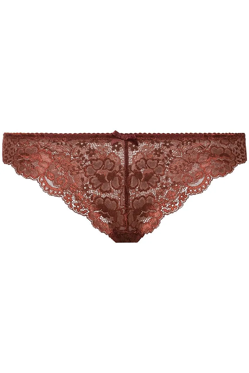 Dieser romantische String-Tanga ist komplett aus weicher Spitze gearbeitet. Die Spitze lässt die Haut zart durchschimmern und sorgt zusammen mit dem elastischen Bund für einen optimalen Tragekomfort. Die kleine Zierschleife in der vorderen Mitte ist ein zusätzliches kleines Highlight.
