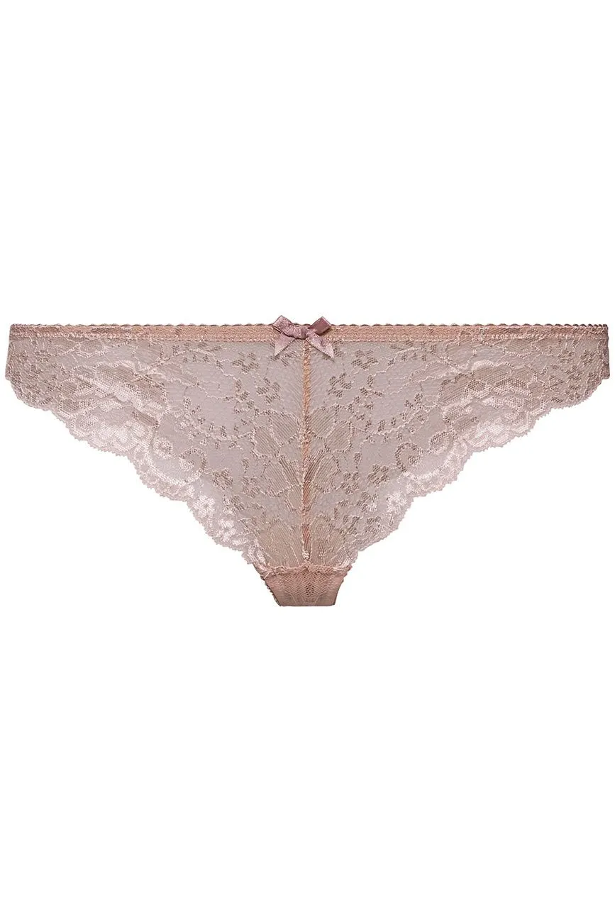 Dieser romantische String-Tanga ist komplett aus weicher Spitze gearbeitet. Die Spitze lässt die Haut zart durchschimmern und sorgt zusammen mit dem elastischen Bund für einen optimalen Tragekomfort. Die kleine Zierschleife in der vorderen Mitte ist ein zusätzliches kleines Highlight.