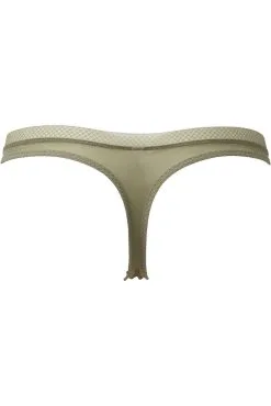 Edler String-Tanga aus zart schimmerndem Tüll in sinnlicher Transparenz. Die dezente Borde an den Abschlüssen verleiht einen femininen Style. Ein goldenes Logo ziert das Vorderteil. String mit Baumwollzwickel
