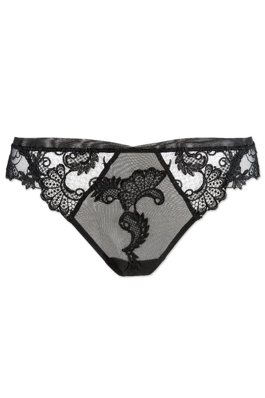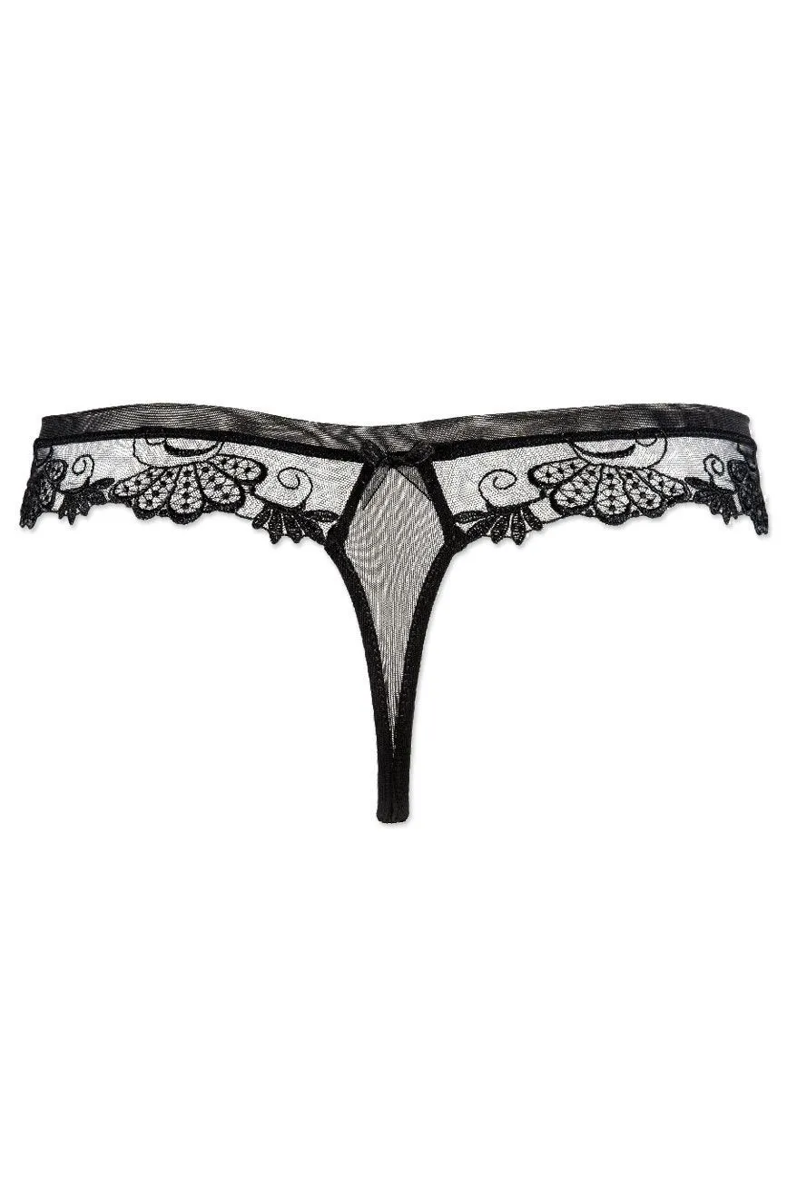 Sehr verführerischer und sinnlicher String-Tanga in zarter Transparenz. Ein besonderer Blickfang ist die kunstvolle Guipure-Spitze im Vorderteil, die sich auch im Rücken unter dem oberen Abschlussband widerspiegelt.