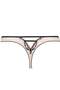 Luxuriöser Tattoo-Look von Lise Charmel. Edle Stickerei auf einem Hauch aus transparentem Micro-Mesh sorgen für einen atemberaubenden Look. Der sinnliche String-Tanga hat aufwendig gestaltete Seiten mit raffinierten Einblicken, im Rücken mit sexy Bänderoptik, mit Baumwollschrittfutter.