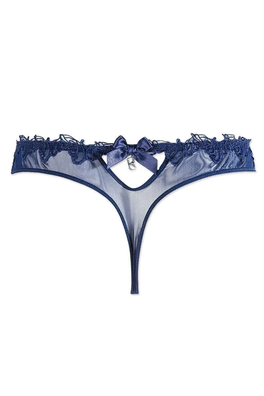 Verführerischer String in einem atemberaubendem Design. Die aufwendige Verarbeitung aus filigraner, arabesker Guipure-Stickerei kombiniert mit hauchzarter Leavers-Spitze und funkelnden Swarovski-Steinchen machen diesen String so besonders.