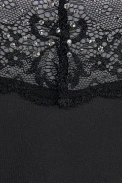 VerfĂĽhrerischer String mit liebevollen Details. Bund aus edler Spitze mit funkelnden Strasssteinchen. Mit eingearbeitetem Baumwollzwickel.