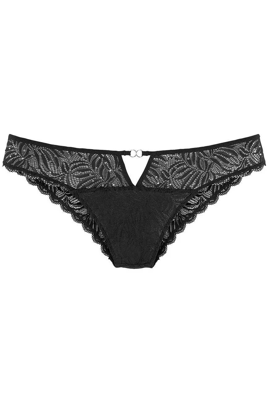 Glamouröse Dessous für deinen großen Auftritt! Extravaganter String mit glitzernden Kristallsteinchen. Mit breitem Bund aus feiner, floraler Spitze und eingearbeitetem Baumwollzwickel.