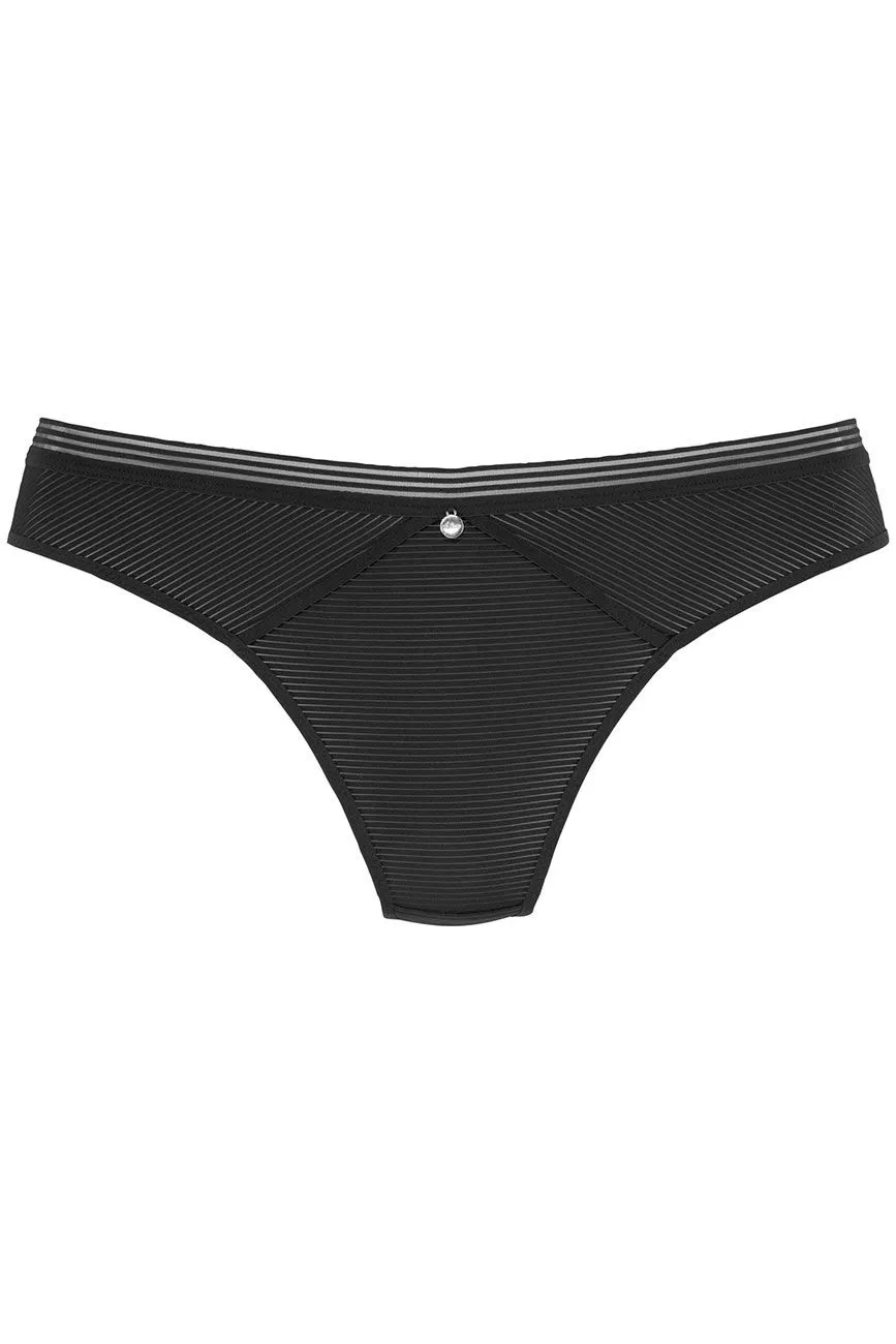 Modischer String von s.Oliver aus angenehm weichem Soft-Mesh-Material mit leichten Transparentstreifen. Mit schmalem Bund in Streifen-Optik. Modisches Metallaccessoire in der vorderen Mitte. Mit eingearbeitetem Baumwollzwickel.