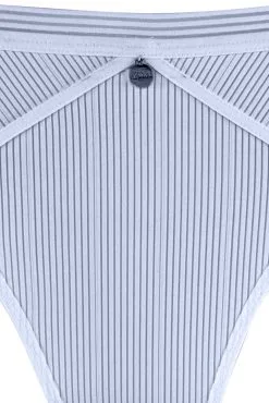 Modischer String von s.Oliver aus angenehm weichem Soft-Mesh-Material mit leichten Transparentstreifen. Mit schmalem Bund in Streifen-Optik. Modisches Metallaccessoire in der vorderen Mitte. Mit eingearbeitetem Baumwollzwickel.
