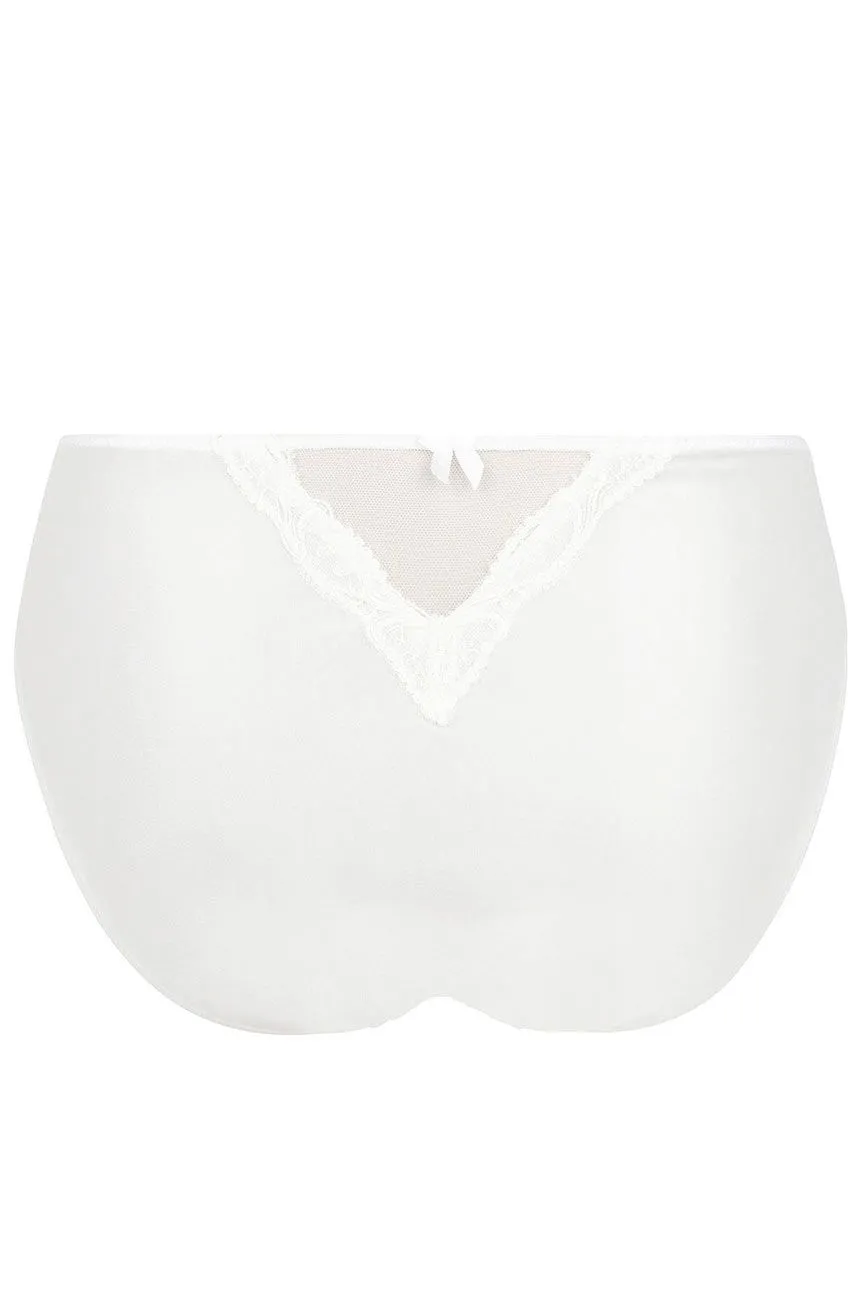 Sinnlicher Taillenslip aus kostbarer Satinseide mit perfektem Tragekomfort. Das elastische Material sorgt für einen flachen Bauch und optimale Passform. Seiten und Einsatz im Rücken aus feinem Tüll in zarter Transparenz. Eine kunstvolle Stickerei ziert den Beinausschnitt im Vorderteil und den oberen Rücken.