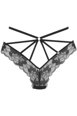 Verführerischer Tanga von JETTE LM. Rundherum aus dezent transparenter Spitze und mit aufregendem Bänder-Design im Bund, eingearbeiteter Baumwollzwickel.